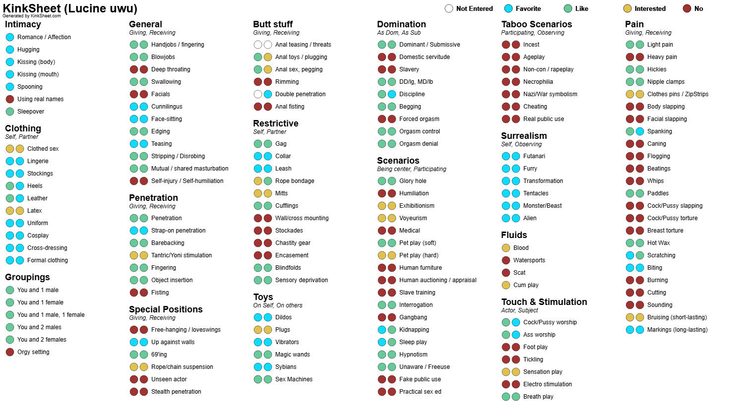 Sexual dislikes: Lalas, hates being the one tied up >.<, bdsm, scat, watersports, nonconsent, i don't need to know what you are doing IRL, just focus on the pretty fairy.